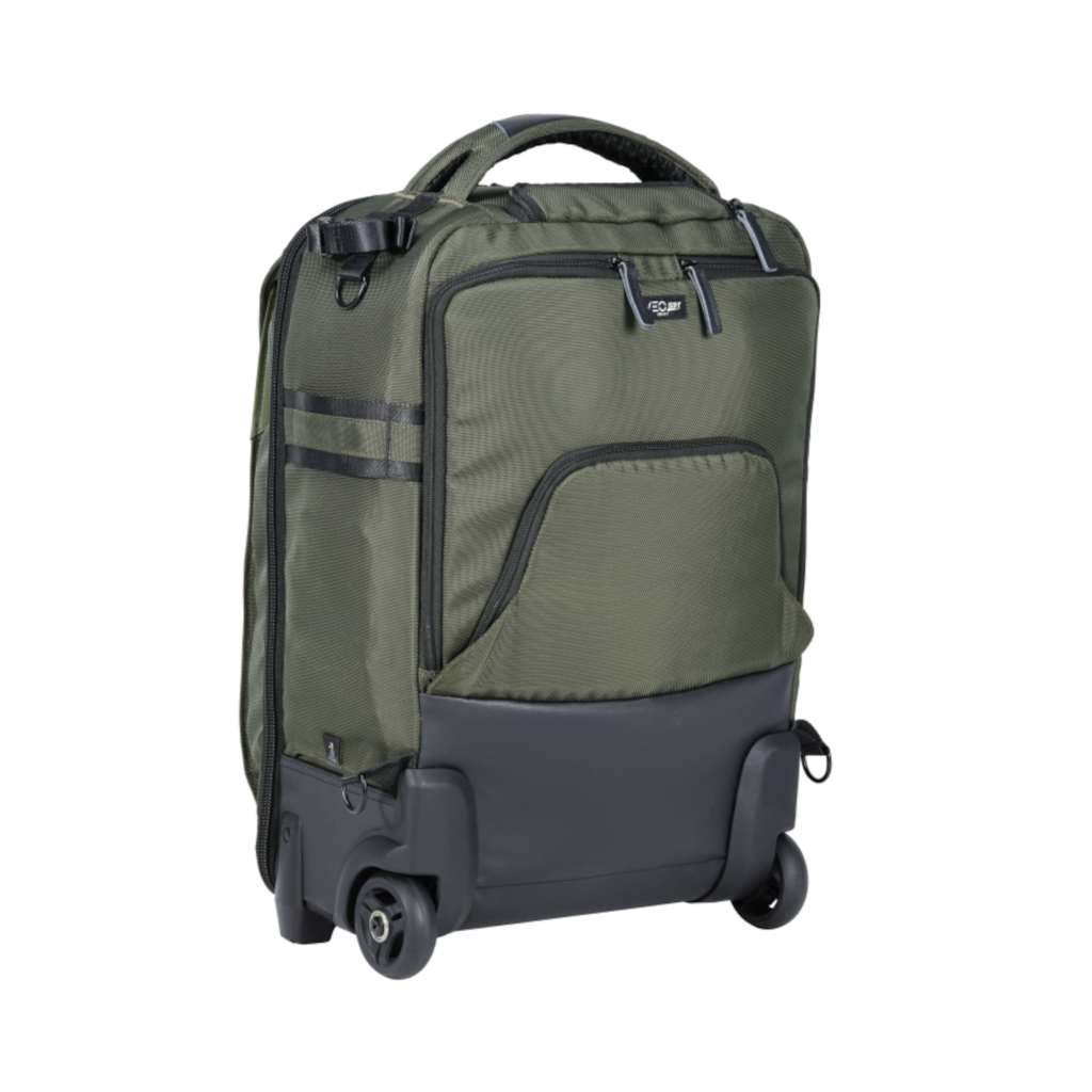 VEO Select 59T Roller Case is a stylish 2-wheel carry-on* trolley that converts to a backpack and packs a lot more than you would imagine. Having 2-wheels allows the interior to be slightly bigger, and this can allow you to carry additional kit. It will fit 2-3 pro DSLR/mirrorless cameras with grip(s), 8-10 lenses (up to 400mm f/2.8), a flash unit, a 17″ laptop with a 9.7” tablet, a tripod and multiple accessories such as: memory cards, cables, batteries and a charger.